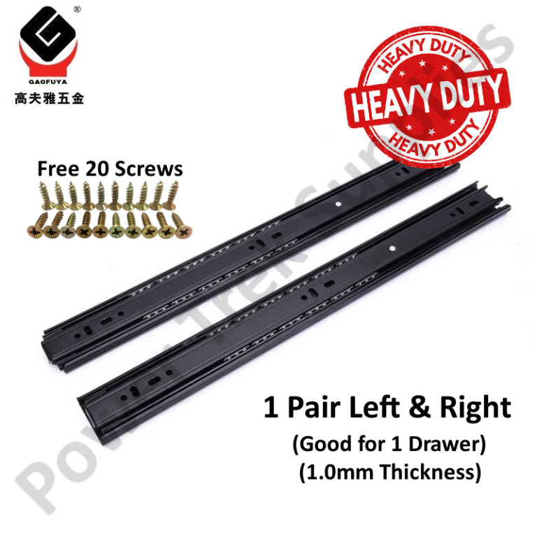 Drawer Slide Heavy Duty 4510 Side 1 0mm Thick Full Ext 08 Black Set Of 2 Furniture Home Living Furniture Other Home Furniture On Carousell